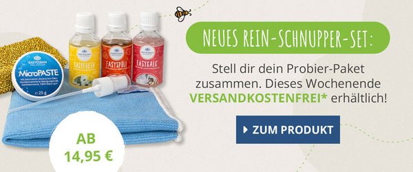 Starte noch heute in dein nachhaltiges Putzvergnügen und spare als Neukunde 5 % auf deine erste Bestellung. Der Rabatt wartet bereits im Warenkorb auf dich. Mindestbestellwert 20,00 €.