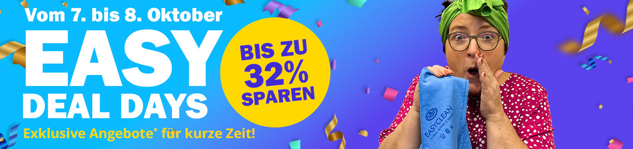Melde dich zu unserem kostenlosen Newsletter an und erhalte als erstes exklusive News rund um EASYCLEAN, eine nachhaltigere Lebensweise und Rabattaktionen. Mit Deiner Anmeldung bist Du damit einverstanden, regelmäßig individuell personalisierte Produktempfehlungen per E-Mail zu erhalten. Informationen zur Personalisierung, zur Verwendung Deiner Daten und den Abmeldemöglichkeiten findest Du in den ausführlichen Datenschutzbestimmung.