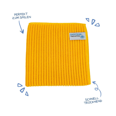 Wie der Name es schon verrät, ist dieses Tuch das perfekte Spültuch für den Abwasch. Dank seiner geriffelten Struktur beseitigt es selbst hartnäckige Flecken. Zur Höchstform läuft das Küchentuch jedoch dann auf, wenn es um glatte, nicht poröse, Oberflächen geht. Dementsprechend eignet es sich hervorragend für alle Oberflächen, wie Waschbecken, Schranktüren, Abzugshauben, aber auch Keramikfliesen, den Küchentisch, Arbeitsflächen, die Innen- und Außenflächen deiner Schränke, Herd, Edelstahlflächen, Armaturen und Küchengeräte – die Liste ließe sich beliebig weiter ergänzen.